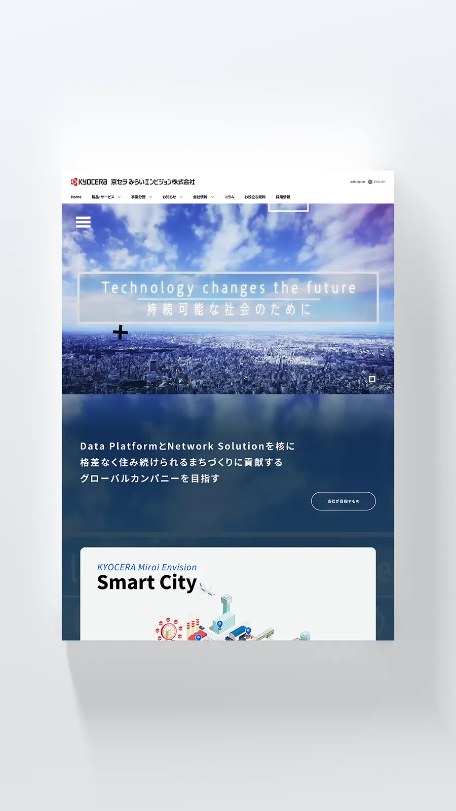 京セラみらいエンビジョン株式会社さまのコーポレートサイトをリニューアルさせていただきました。下層ページではパーツ化されたモジュールを作成し、ページ数が多い中で汎用性や運用面を考えた作りがされています。